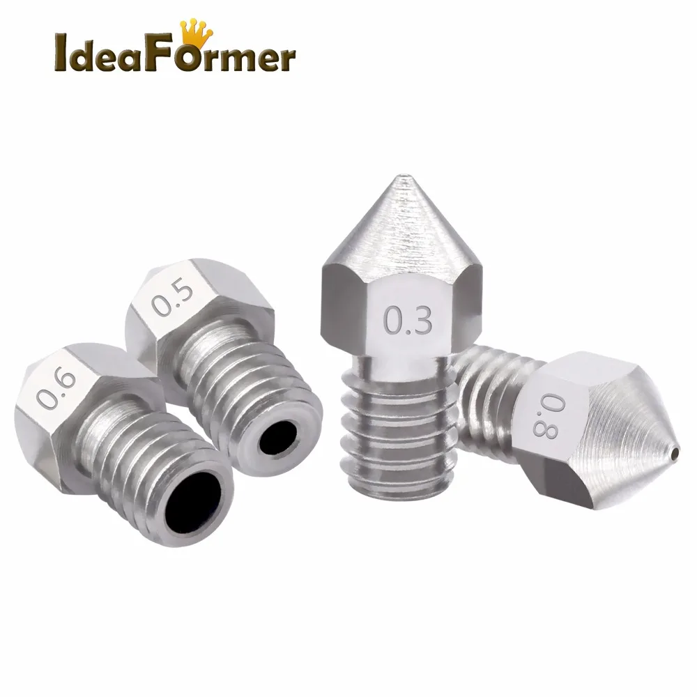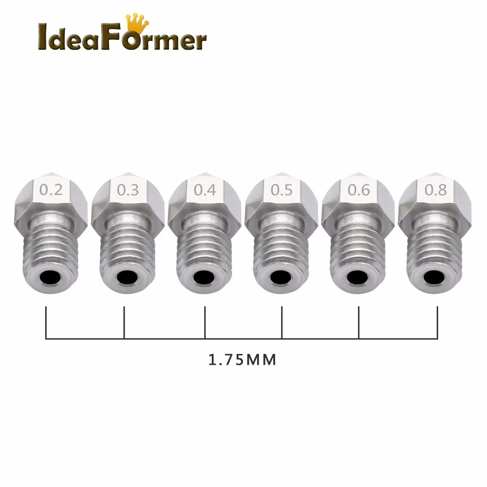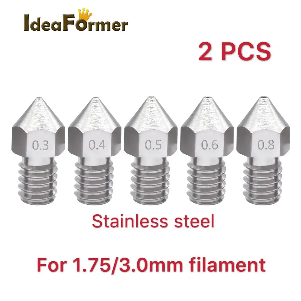 Резьбовое сопло M6 MK8 из нержавеющей стали, 2 шт., 0,20,30,40,50,60,8 мм для 3D принтера Fliament 1,753,0 мм