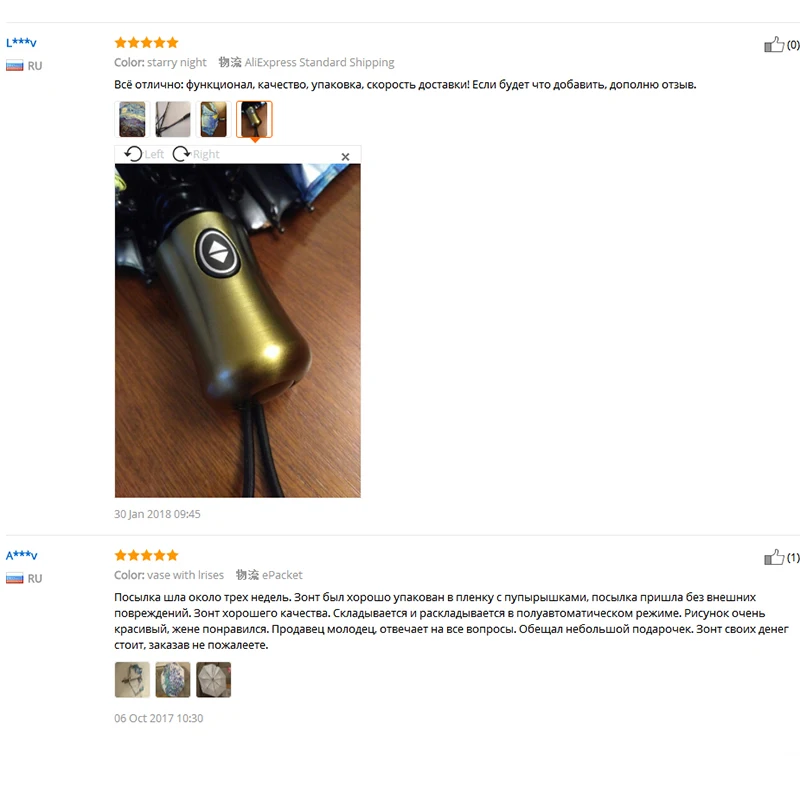 Заказала второй раз...зонты красивые..попадала под сильный дождь.... все ок... зонт пришел быстро...сдэк 4 дня вез...автомат...продавцом довольна