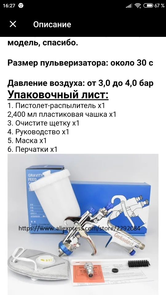 Заказывал 2 краскопульта а пришел один. долго решали с продавцом кто виноват..Пришлось открыть спор. Продавец пообещал выполнить поставку и отправить в Китая быстро. спор закрыл и поверил продавцу. Должен сказать что продавец выполнил свои обещания и прислал еще один краскопульт достаточно быстро из Китая. правда обещал подарочек положить, но только в обещаниях это и осталось. Это не главное, главное товар получил...лучше поздно чем никогда. спасибо. упаковано хорошо и даже не мятое