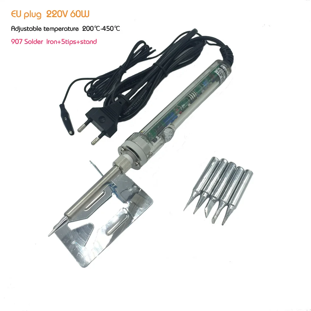 Электрический паяльник GJ 907, с регулируемой постоянной температурой для ЕС, бессвинцовый, с внутренним нагревом, паяльная станция + Наконечники 5 шт., 220 В, 60 Вт