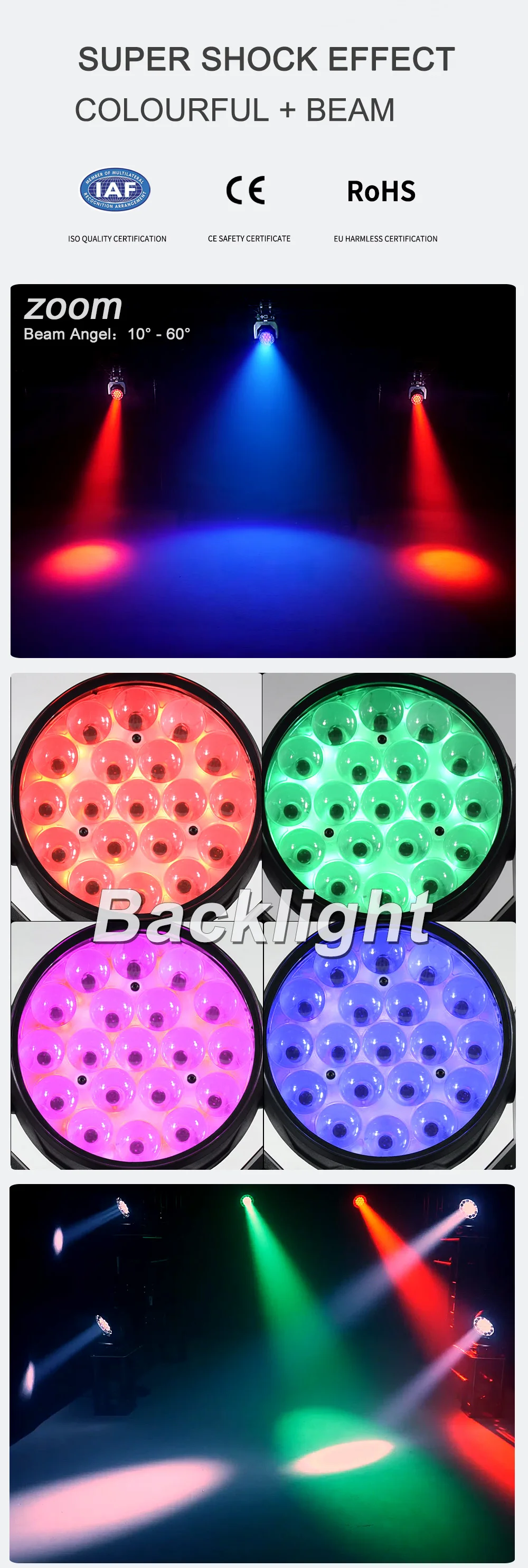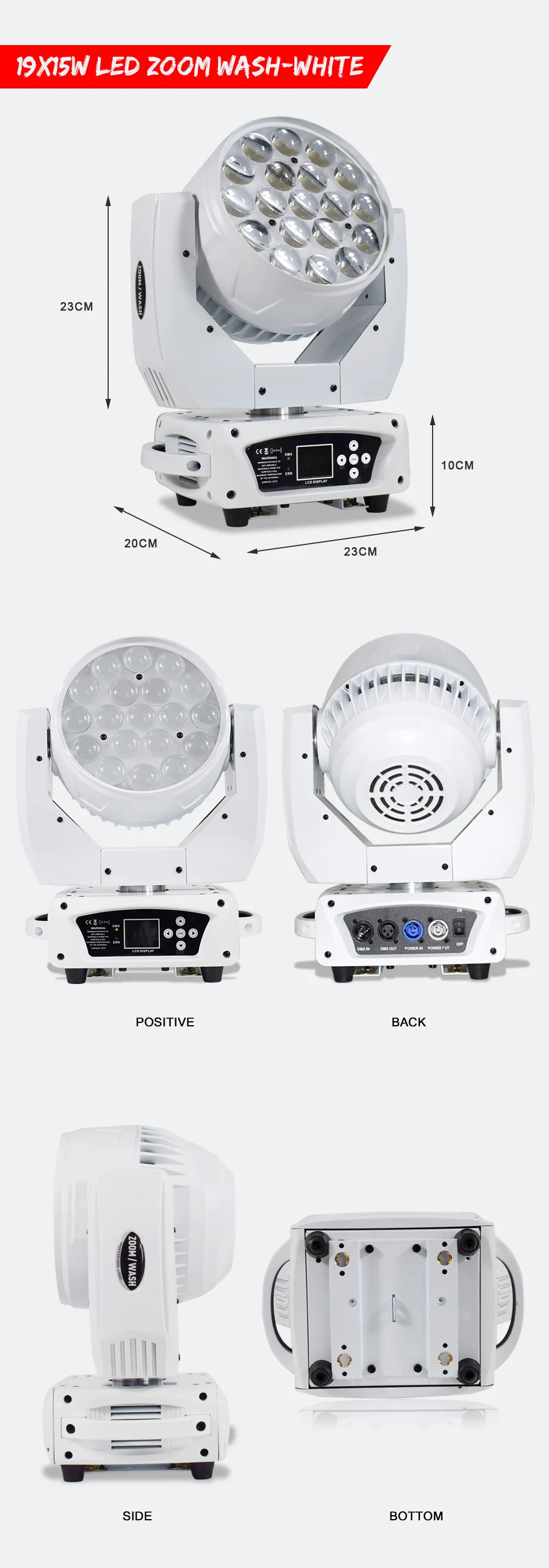 Напряжение: AC 100V-240 В пер. тока, 50/60 ГцПотребляемая мощность: 245 ВТСветодиодный: 19*15 Вт RGBW 4в1 Osram СВЕТОДИОДНЫЙЛуч ангела: 10deg-60degЧрезвычайно маленький, быстрый и мощный светодиодный движущийся луч.DMX канал: режим 14/25 каналовРежим работы: DMX512, Master/Slave, Sound, AutoОтличное встроенное освещение показывает в режиме Master/SlaveСмешивание цветов: широкая цветовая палитра, RGBW Смешивание цветов пучка смешивание цветов: RGBW Aura смешивание цветов: RGBРегулировка яркости: 0 - 100% гладкая электронная регулировка яркостиСтробоскоп: 1-25 раз/сек; Электронный затвор со стробоскопическими и импульсными эффектамиКрутой вентилятор: тихий вентилятор, перестаньте работать 3 минуты после того, как светодиодныйПанорамирование и наклон: быстрое движениеПанорамирование 540 градусов 16 бит поворотНаклон 200 градусов 16 бит поворотСиний ЖК-дисплей для удобной навигации, с китайским и английским языком3-контактный XLR DMX вход/выходIP Рейтинг: IP20Черный или белый корпус доступенИдеально подходит для сцены, ТВ-театра, ТВ-студии, проката и дискотеки,Супер-яркая Однообъективная стирка с полностью премированным цветомШирокая цветовая палитра, смешивание цветов RGBWЭффект глазных конфетОднородные оттенкиВстроенный FX двигательРавномерный зум от 10 до 60 °Выход 6000 люменовБыстрое движениеКомпактный, низкий вес конструкции (6,5 кг)Высокая эффективность, низкое энергопотребление, длительный срок службыРазмер коробки: 445*365*350 ммВес нетто: 8,8 кг Вес брутто: 9,2 кг