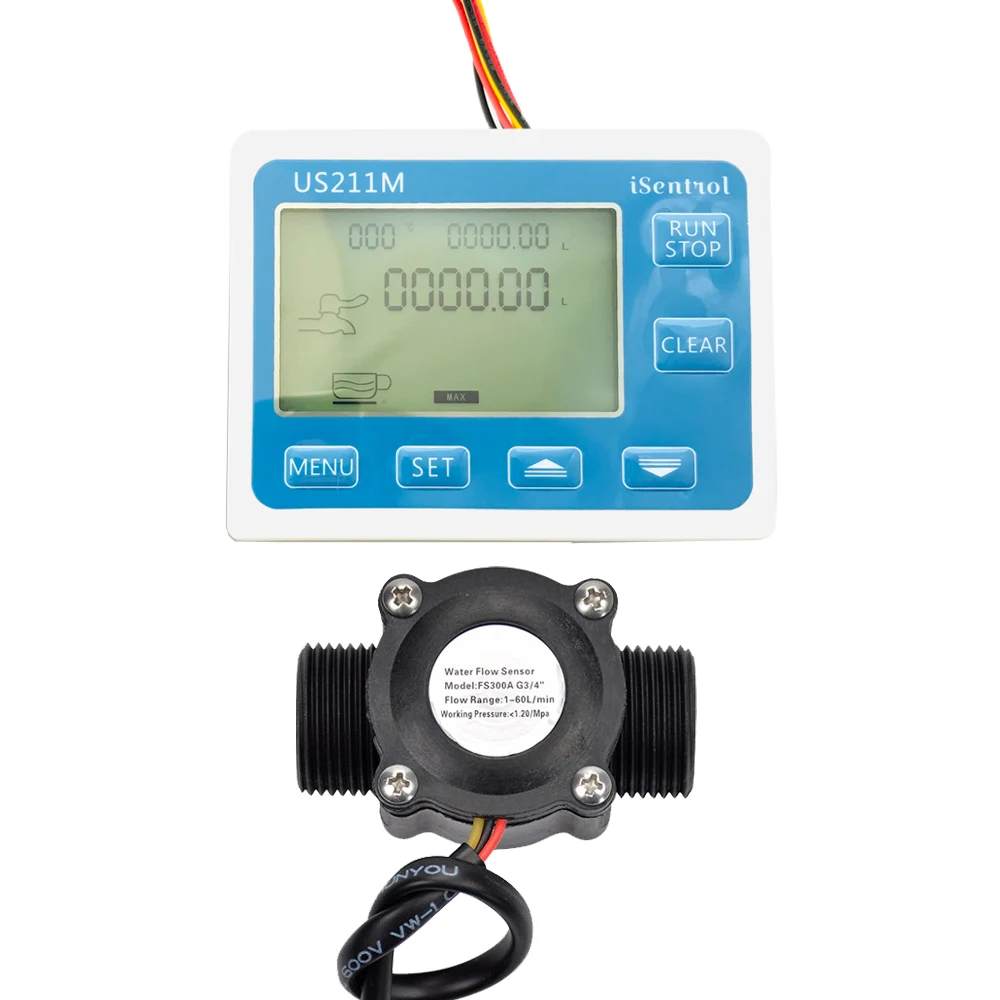 Цифровой расходомер US211M с нейлоновым датчиком расхода воды FS300A G3/4 "турбинный расходомер iSentro