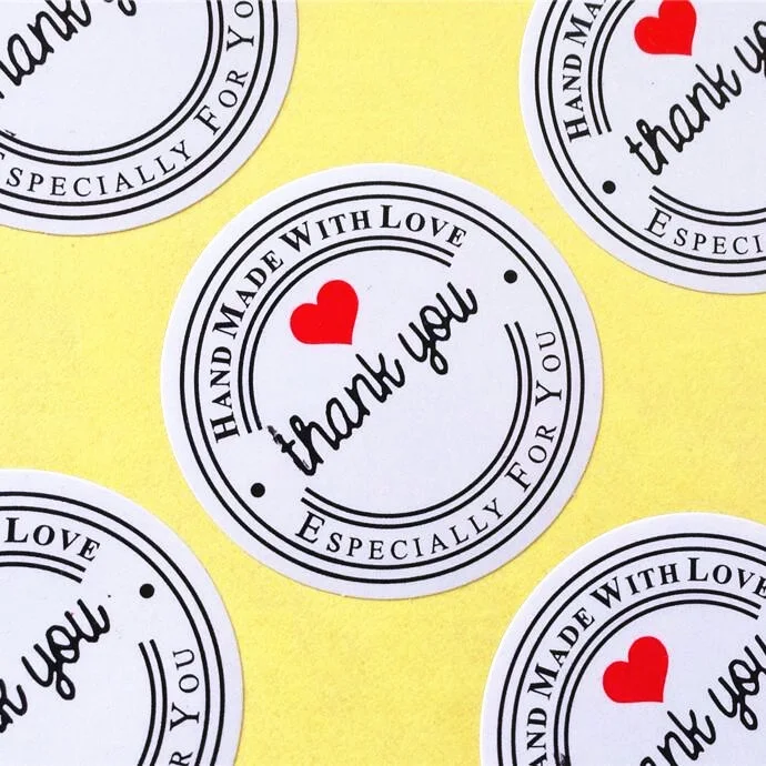 1000 шт.лот клейкая крафт-наклейка в виде кругового сердца с надписью Thank you для выпечки, подарочные этикетки, наклейки, инструменты для творчества для студентов