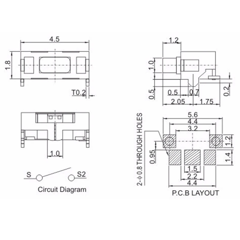 10 шт.лот 2x4 2*4*3,5 мм микро SMD тактовый переключатель Боковая кнопка телефонная кнопка
