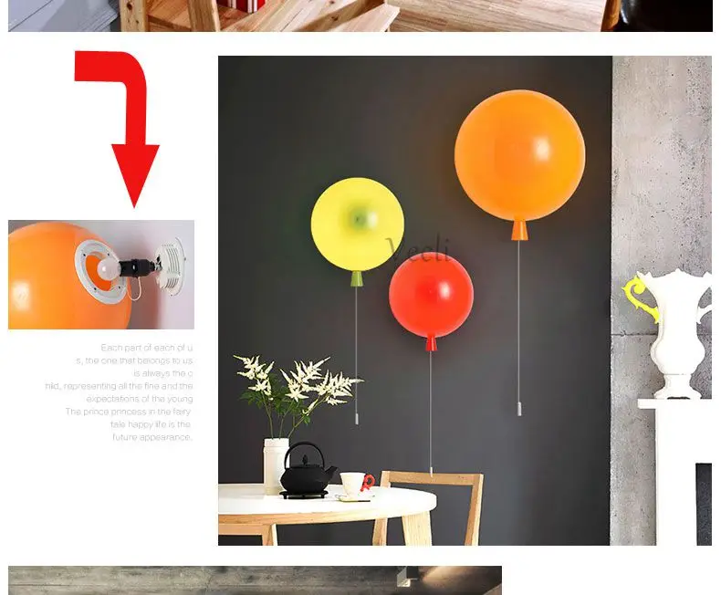 Настенная лампа с цветными воздушными шарами, современный модный акриловый светильник для спальни 20 см, лампа для детской комнаты, балкона, прикроватное бра с бюстгальтером