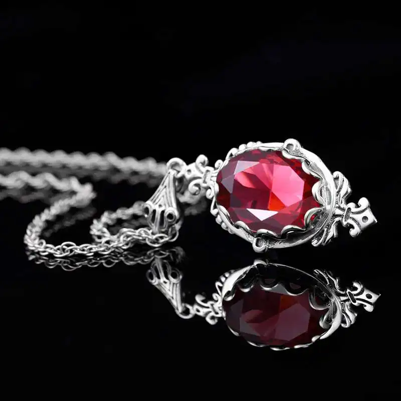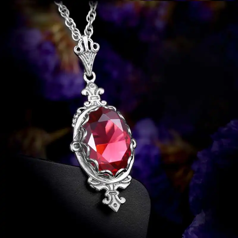 Тип металла: твердый 925 пробы серебристыйТип камня: синтетический РубинРазмер подвесного камня: 35х14х6 ммФорма камня: овальнаяЦвет металла: античное сереброШтамп: 925Стиль: винтажный