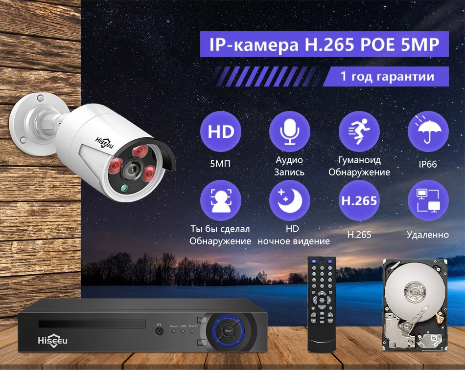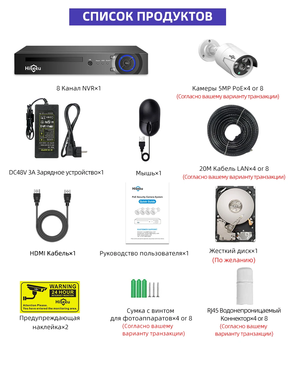 Система видеонаблюдения Hiseeu, 8 каналов, 5 МП, 3 Мп, H.265