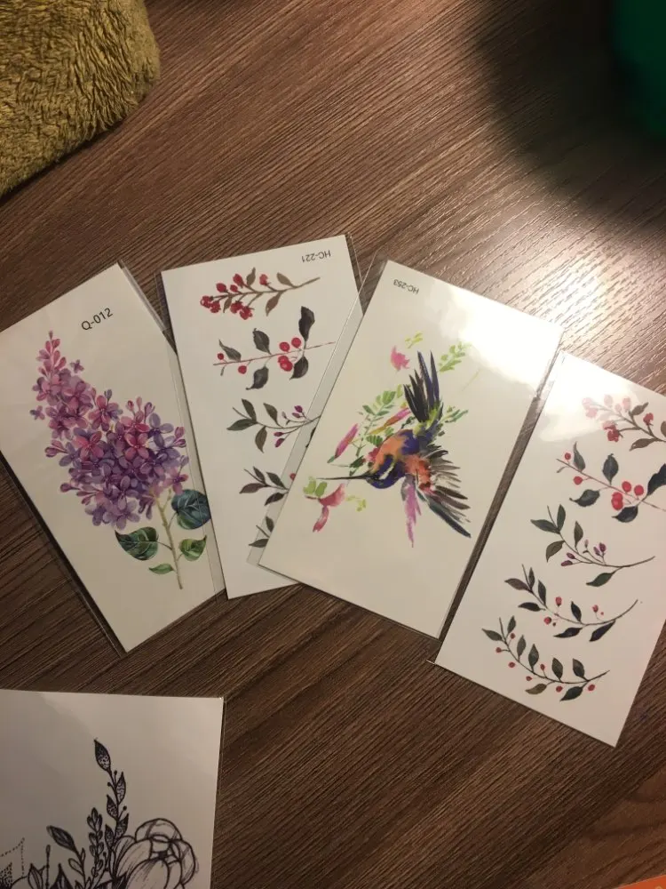 Доставка быстрая, трек отслеживался на всем пути. Тату красивые и очень стойкие. Даже после купания не слазят а становятся светлее как настоящие. Очень довольны. Спасибо большое.