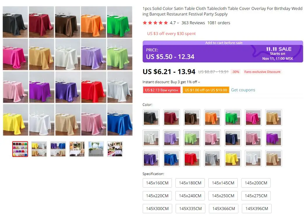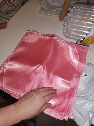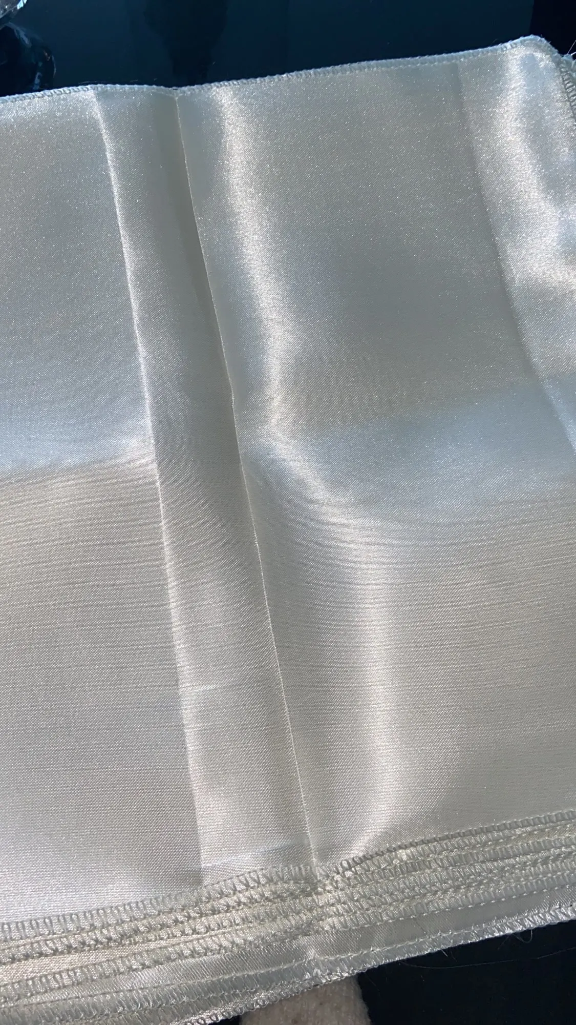 Очень тонкая ткань, красивый сатин, но некоторые полотенца могут отличаться по цвету. По непревзойденной цене, я в целом доволен своей покупкой, которая красиво украсит наши свадебные столы.