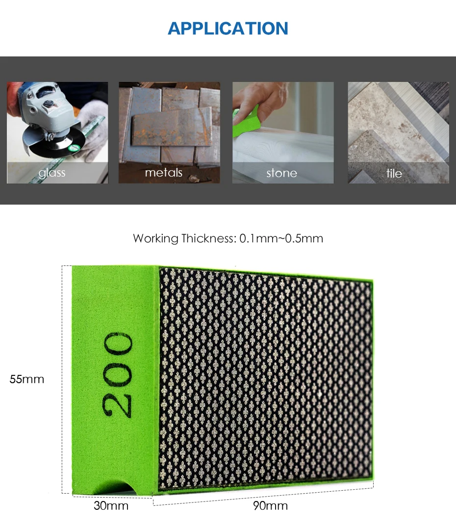 Применение:Для ручной полировки или восстановления царапин на широком спектре материалов, они идеально подходят для полировки гранита, мраморного стекла и бетона, где и для особой формы.