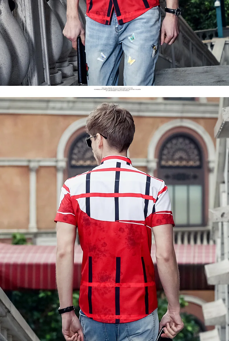 Мужская Повседневная рубашка Fanzhuan, красная облегающая блузка с коротким рукавом, с принтом, на лето, 713046