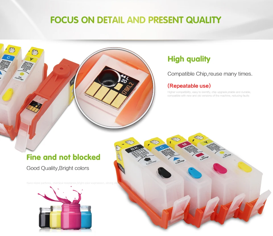 4. Картриджи многоразового использования, вы можете повторно заправлять чернила в катриджеты после окончания чернил, и затем он может работать снова.
