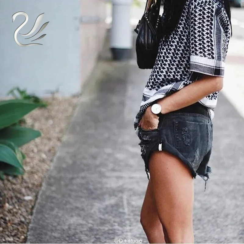 Женские джинсовые шорты Vanlo Apparel, голубые винтажные рваные джинсовые шорты с бахромой, с карманами на пуговицах, 2019