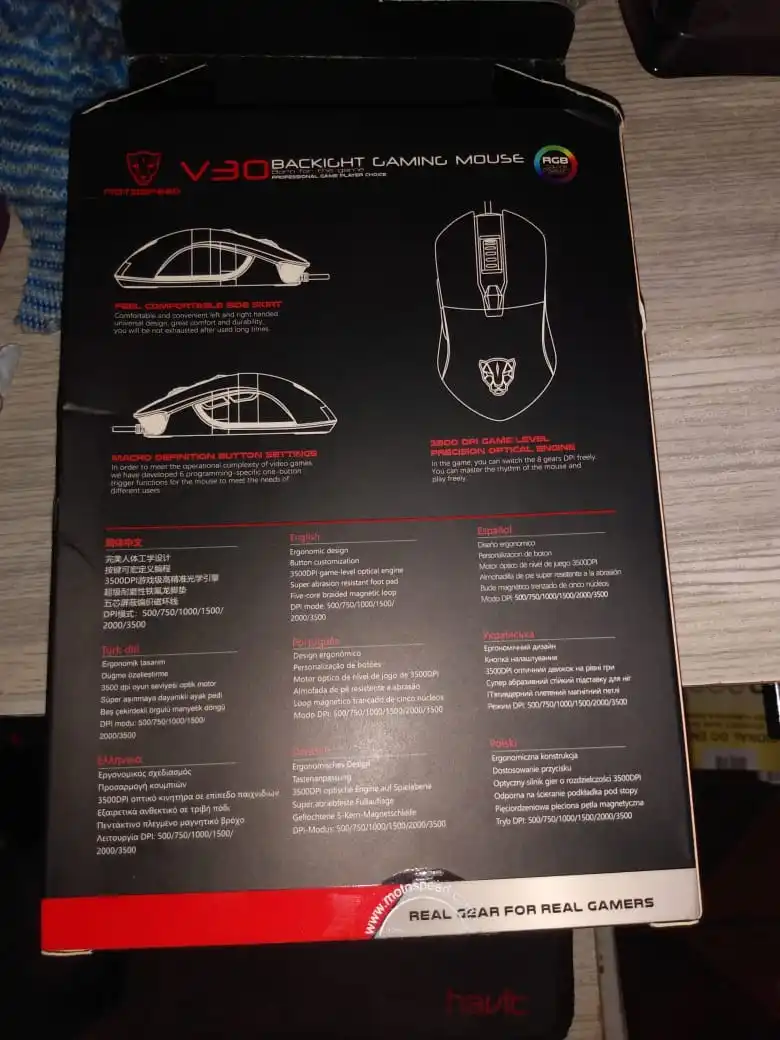 8. Режим DPI: 500/750/1000/1500/2000/3500 точек/дюйм