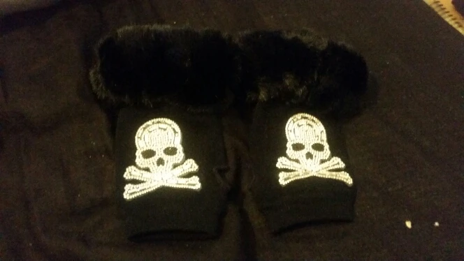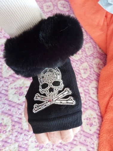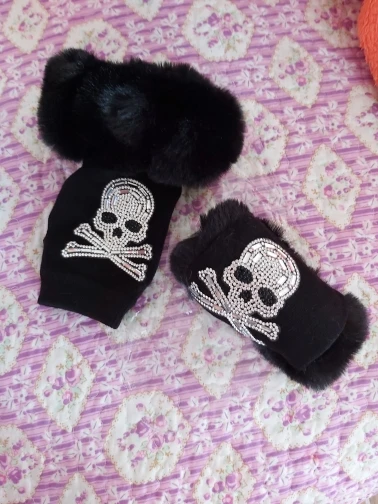 Женские танцевальные перчатки без пальцев с мультяшными животными лисицей, зимние теплые короткие плюшевые вязаные перчатки с блестками и черепом без пальцев G102