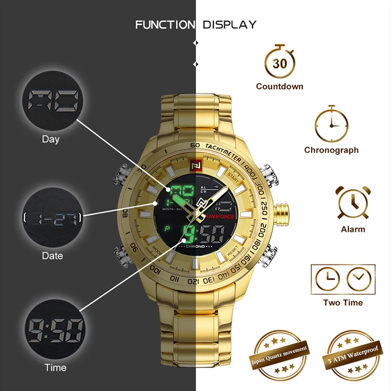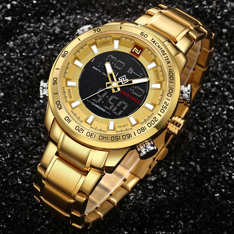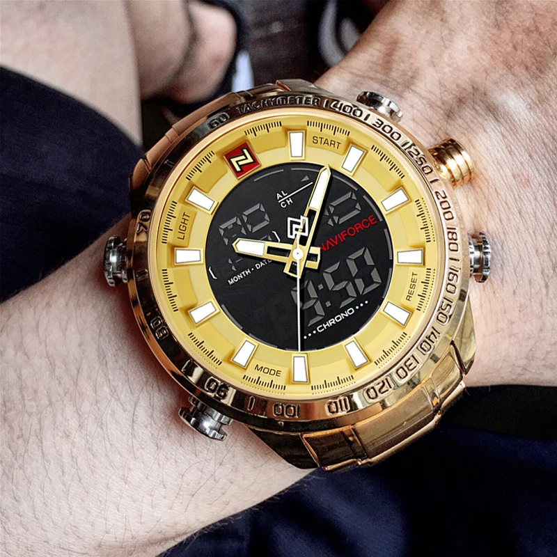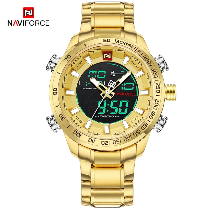 NAVIFORCE Роскошные Брендовые мужские часы, военные спортивные цифровые кварцевые наручные часы для мужчин, водонепроницаемые большие мужские часы из нержавеющей стали