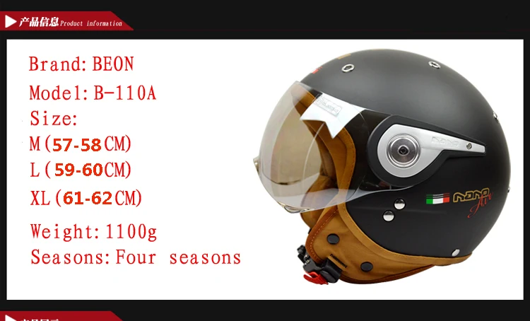 Винтажный шлем BEON Moto rcycle, мотоциклетный велосипед, скутер в стиле ретро, открытое лицо, велосипедные шлемы