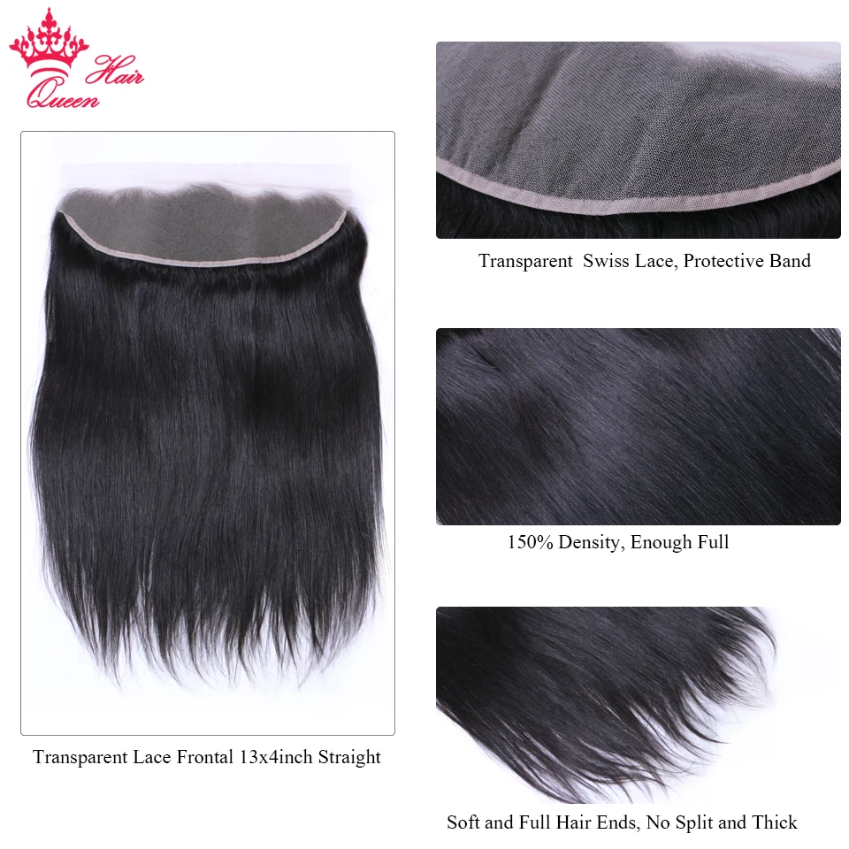 Прямые бразильские волосы Queen Hair, 13x4, прозрачная сетка, Фронтальная застежка, 100% натуральные волосы, средне-коричневые, швейцарские волосы