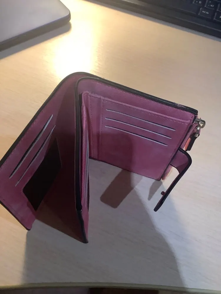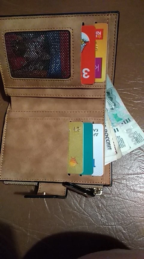 Покупала для себя кошелёк, хотелось такой же как был. Он отходил 6 лет и решила отправить труженика на отдых. Сравнивая их, этот мне нравиться чуть меньше. У него шуршащая подкладка, там тканевая была. Так почти такой же. Посмотрим, дотянет ли он до старшего брата. По доставке и самому товару нареканий нет. Кошелек удобный и маленький. В нем очень много отделений и кармашков, рубли в отсек для банкнот легко помещаются. Всё, что нужно есть.