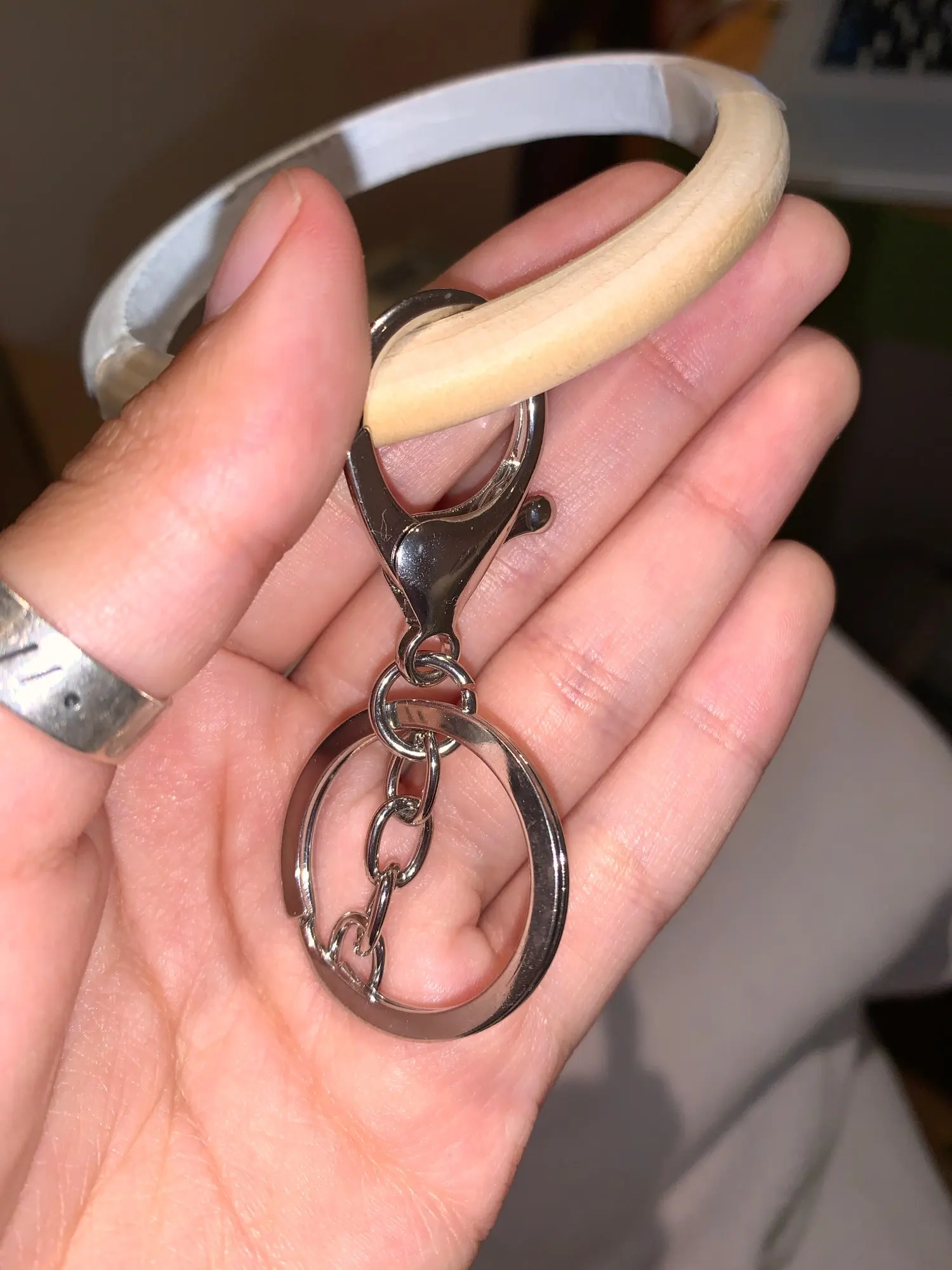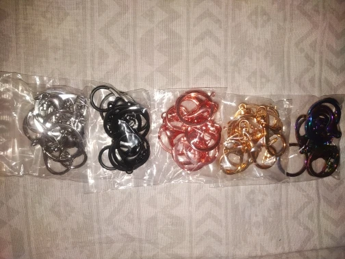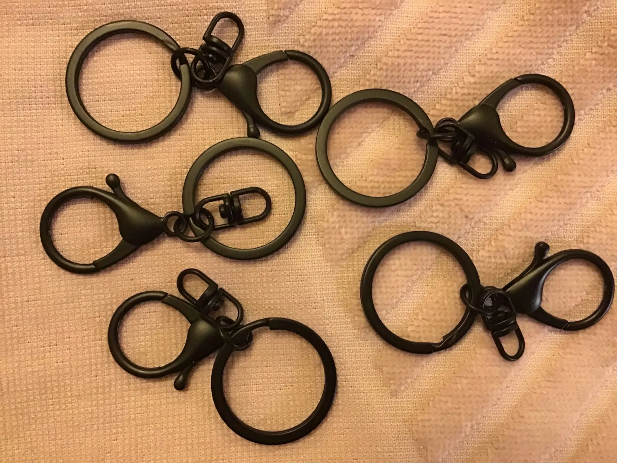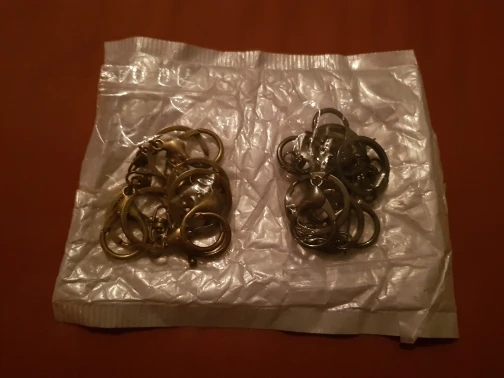 Кольца для ключей хорошие большие, а вот карабины не очень крепкие - концы зажима не плотно прилегают друг к другу, есть небольшой зазор. Думаю, что второе кольцо, если прикреплять на карабин, не выпадет, но выглядит не очень надежно. В целом, нормально. Посмотрим, как будет в эксплуатации.