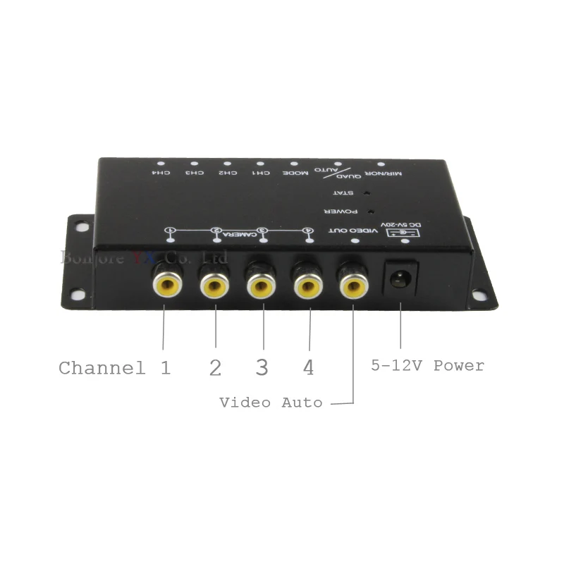 Автомобильная камера видео управления коробка для четырех каналов с Quad Сплит, с зеркальным переключателем для каждой камеры