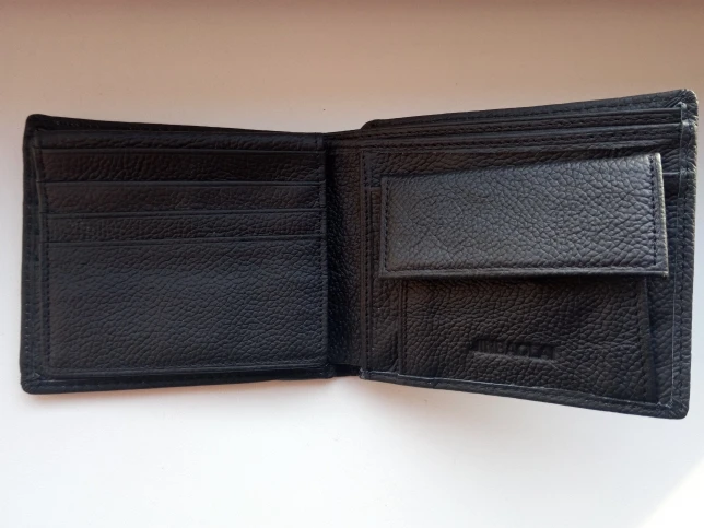 Кошелек довольно удобный. Купюры, карты и монеты размещаются хорошо. Недостатком можно считать большую толщину из-за кнопочной застежки монетного отделения
