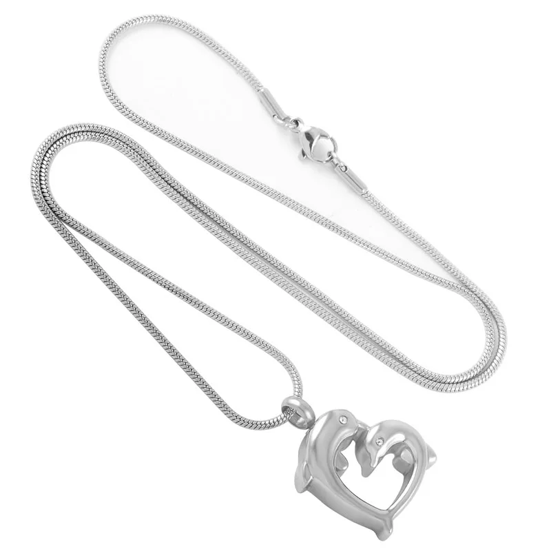 IJD9150 популярные ювелирные изделия с животными для сувенира, оптовая продажа, 316L нержавеющая сталь, двойной Дельфин, поцелуй, кремация, ювелирные изделия, памятный сувенир, пепел, подвеска