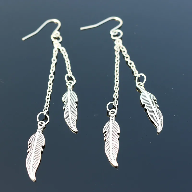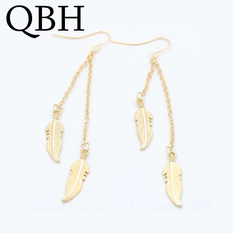 Висячие серьги в богемном стиле, Винтажные Украшения для ушей, перо, листья, лист, длинные кисточки, лист, свадебные украшения