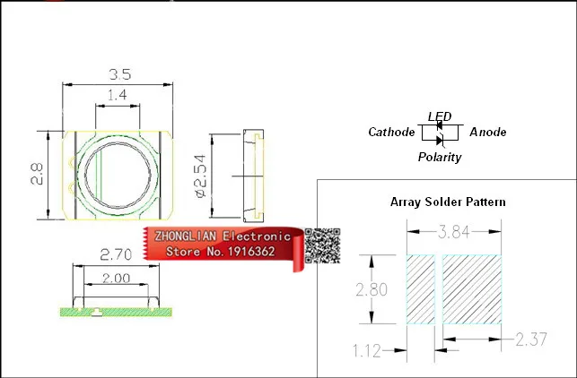 200 шт.лот для LG SMD LED 3528 2835 1 Вт 3 в, холодный белый для подсветки телевизораЖК-дисплея