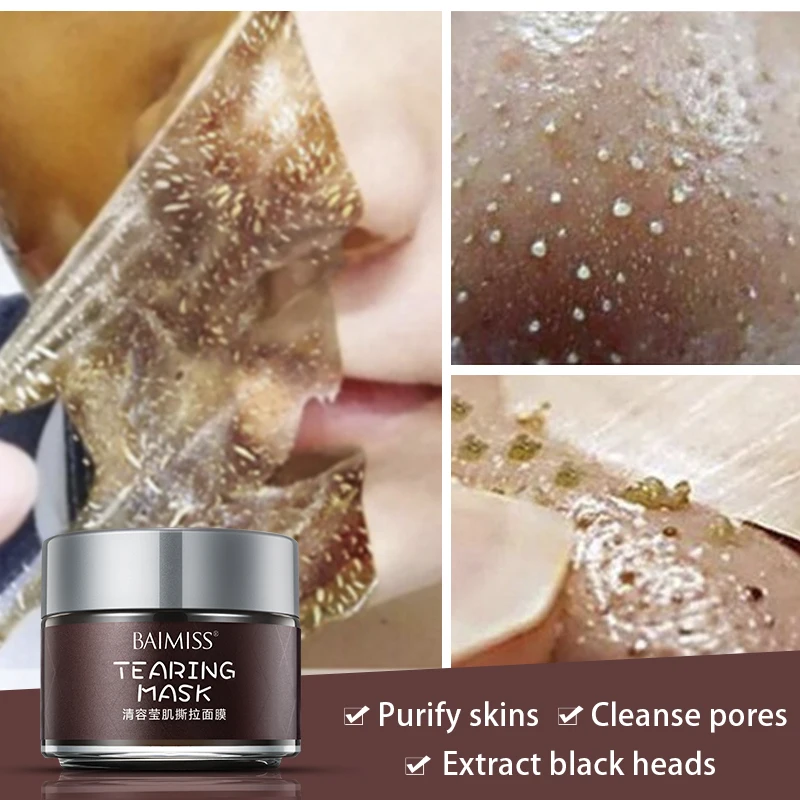 BAIMISS маска для удаления угрей 100 г поровая полоска пилинг маска для носа глубокое очищение кожи уход за лицом против акне лечение черная маска
