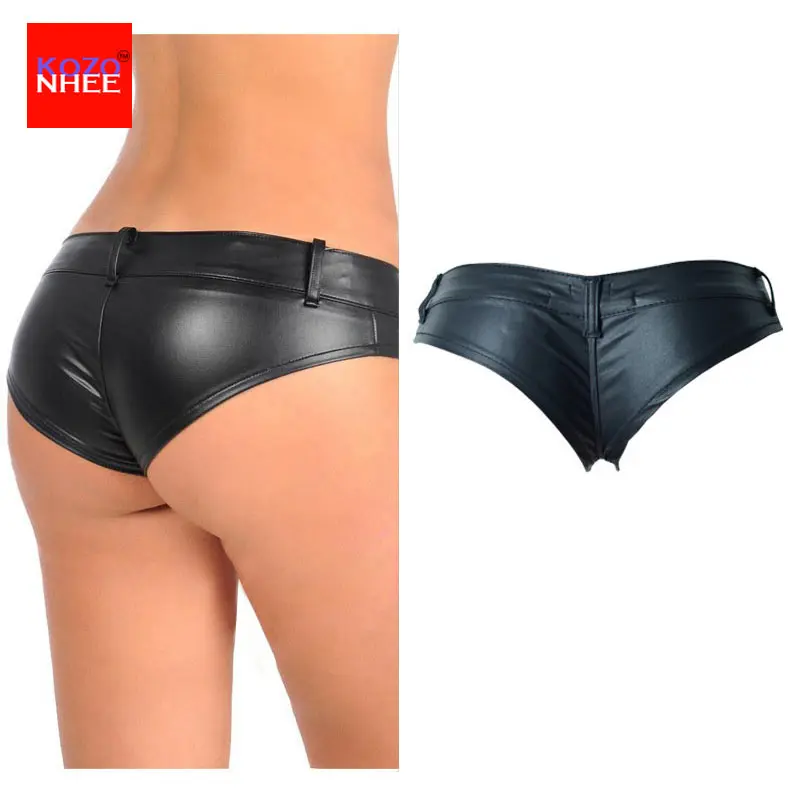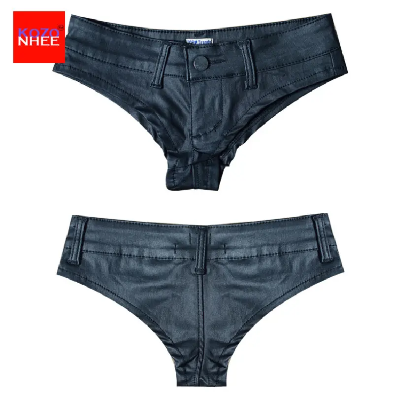 Женские пикантные эластичные шорты из искусственной кожи с заниженной талией, эластичные летние модные кожаные короткие брюки, обтягивающие супер шорты
