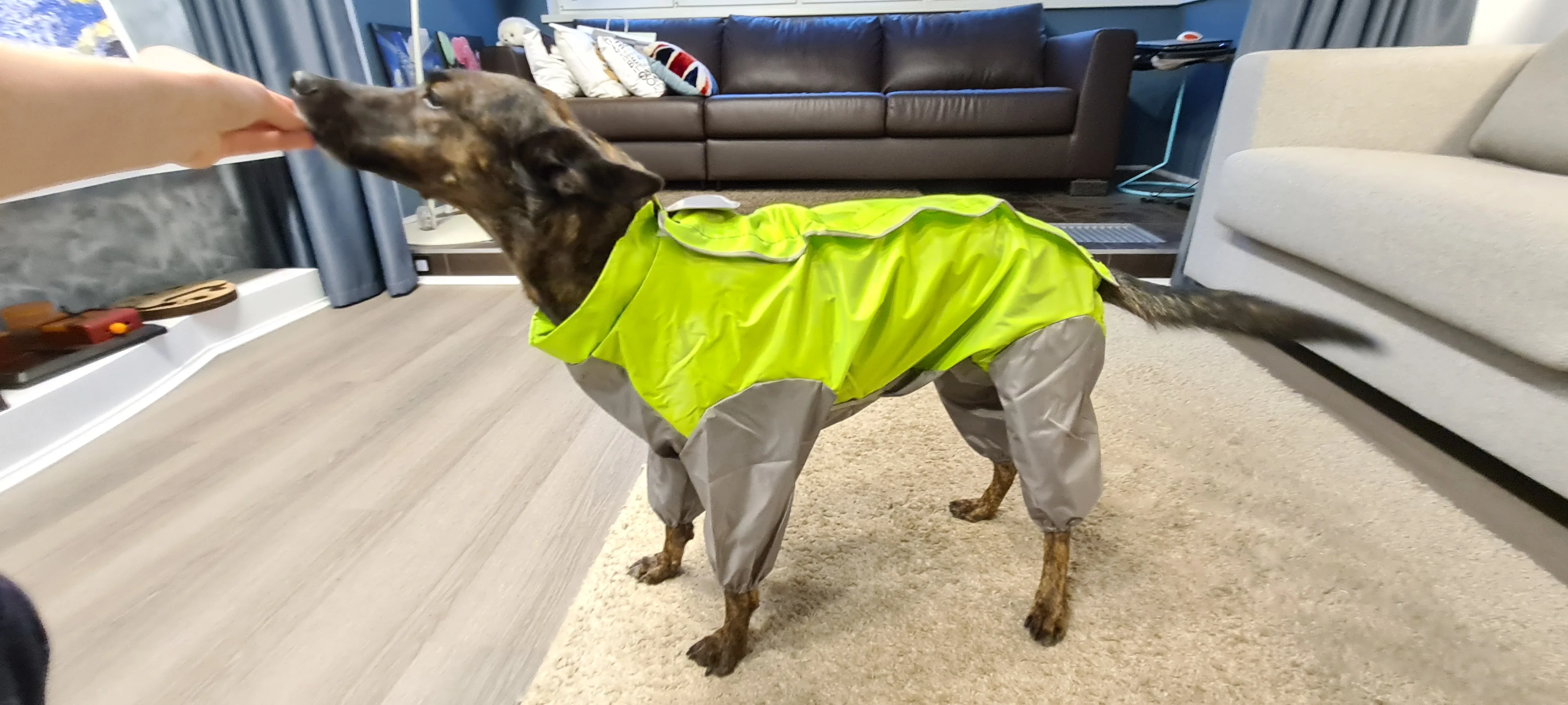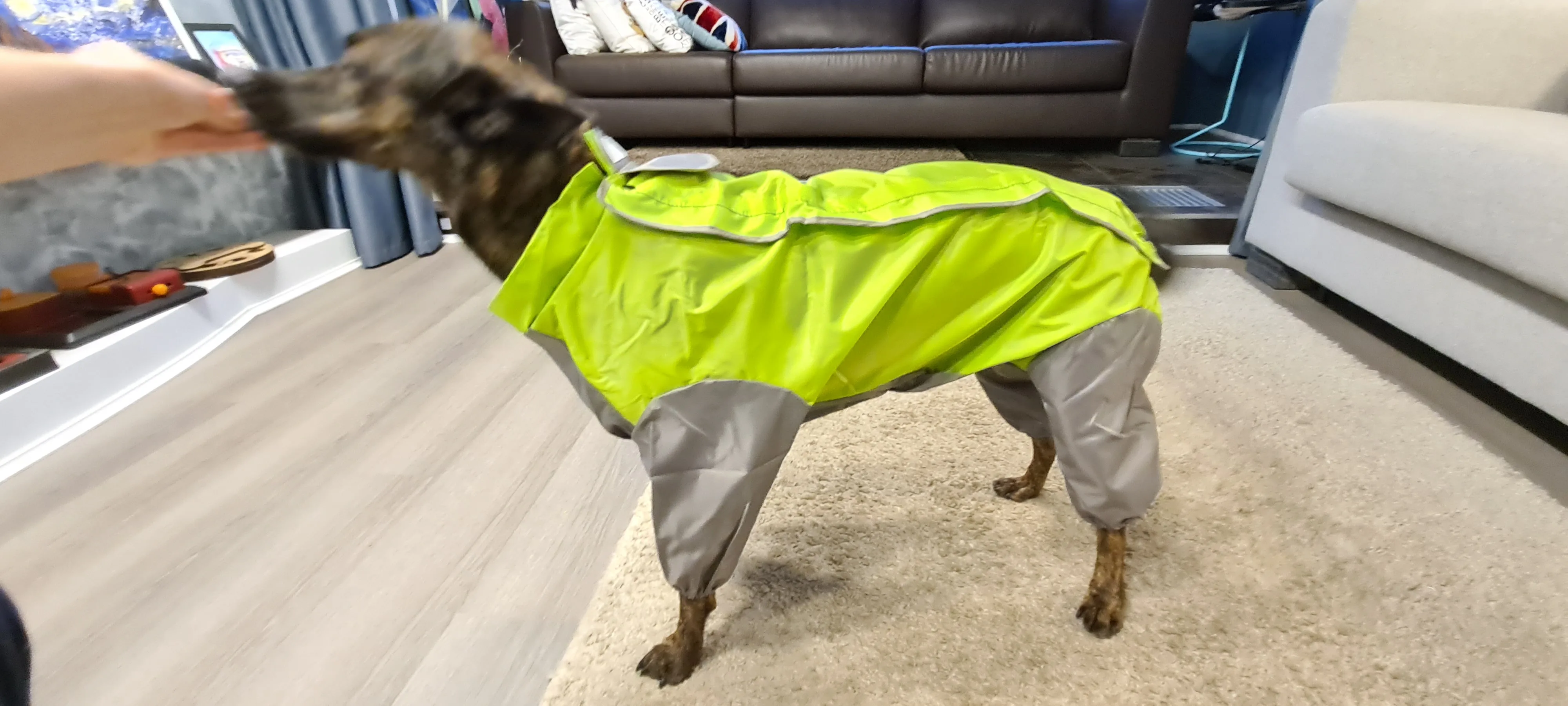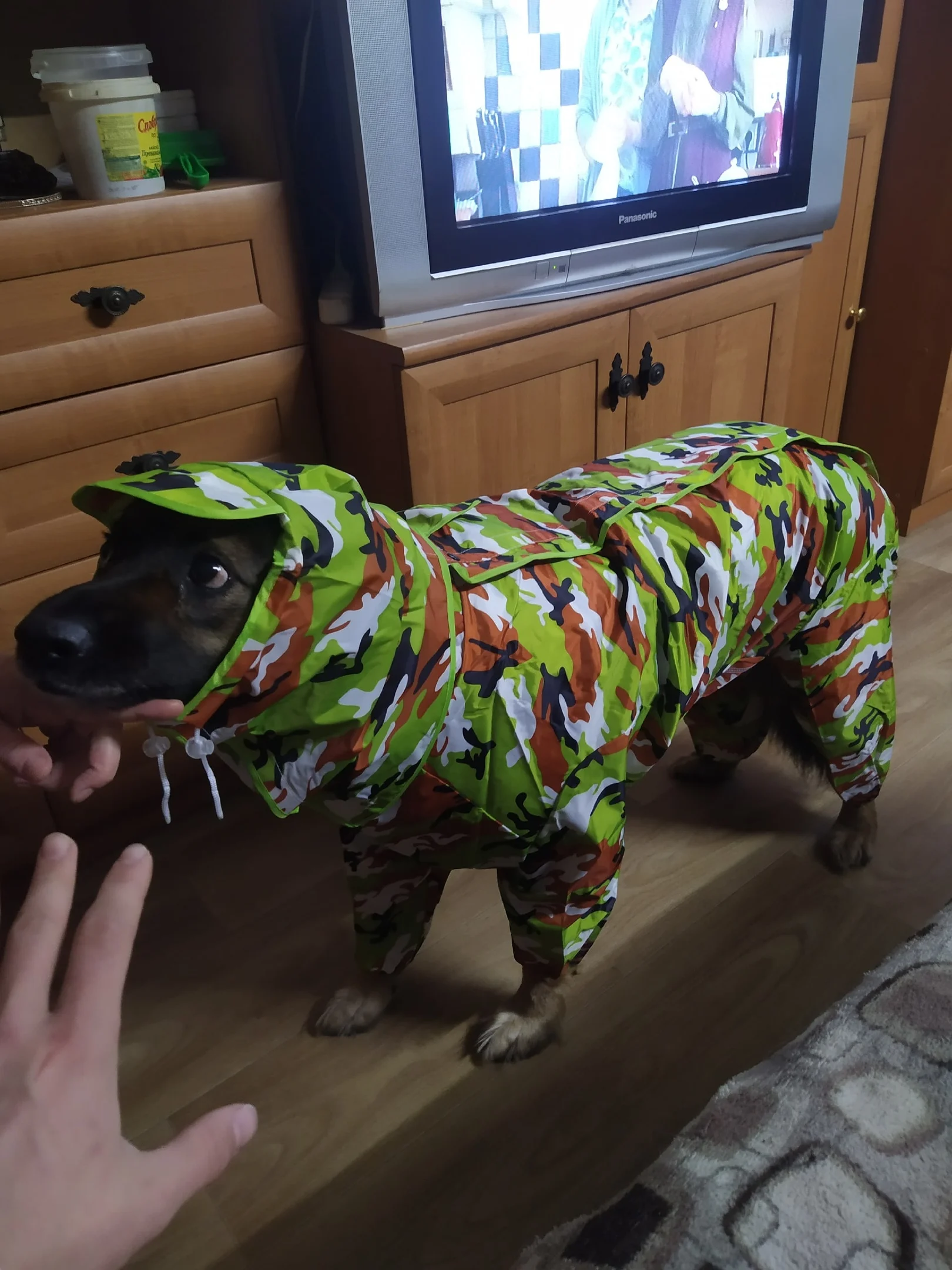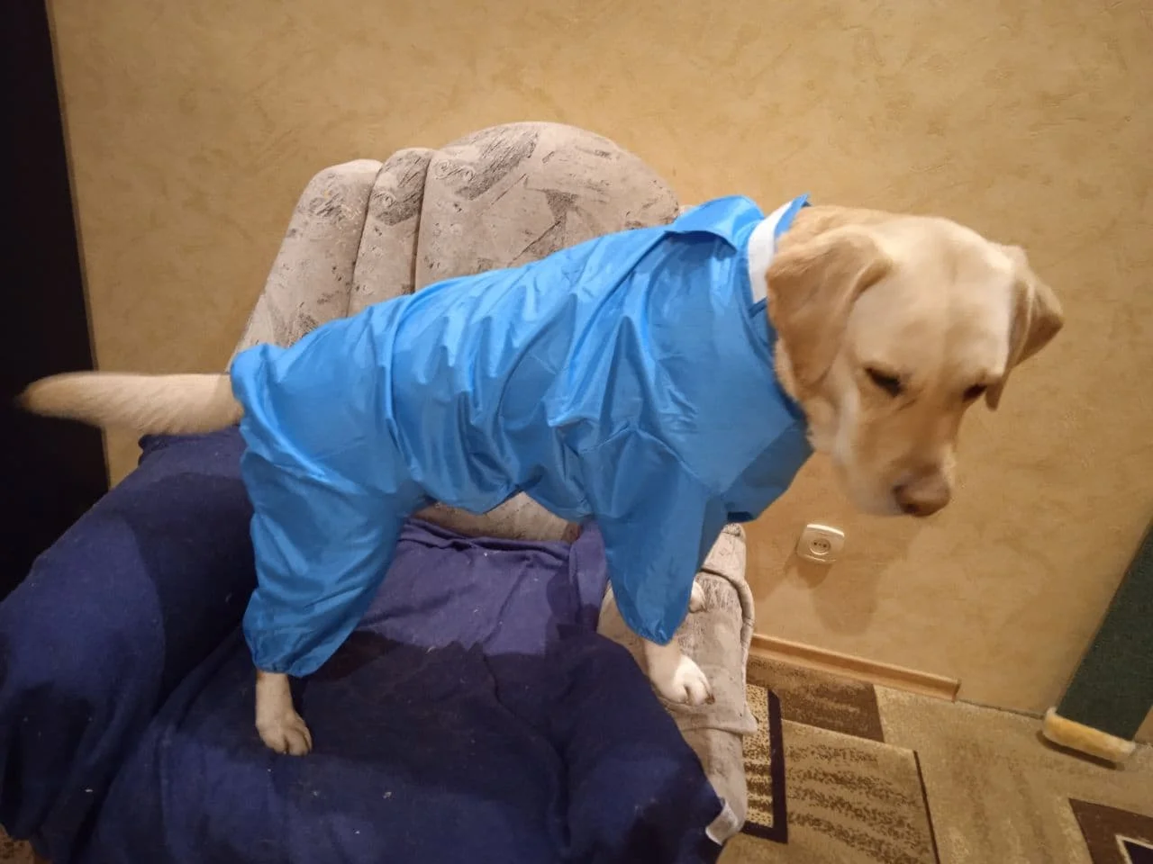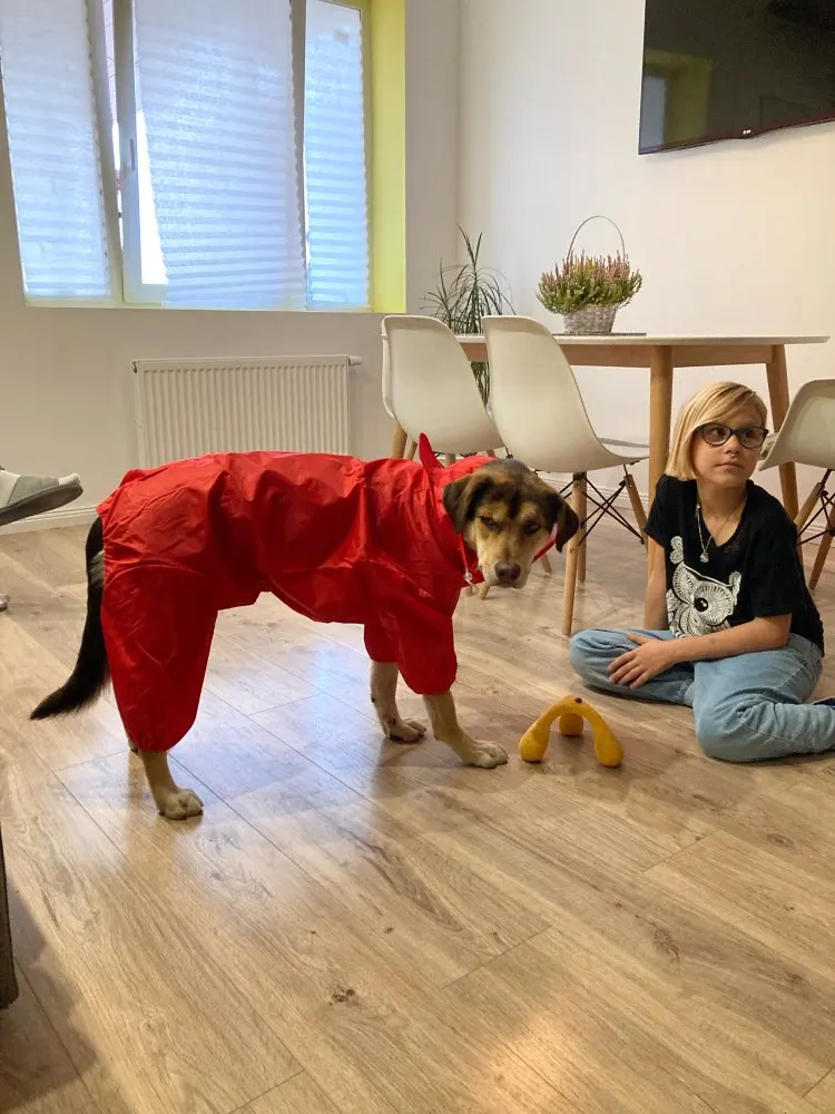конечно не самый дешевый вариант, но дождевик чудесный, теперь у нас шерсть на лапах и на пузе чиста после прогулок в слякоть