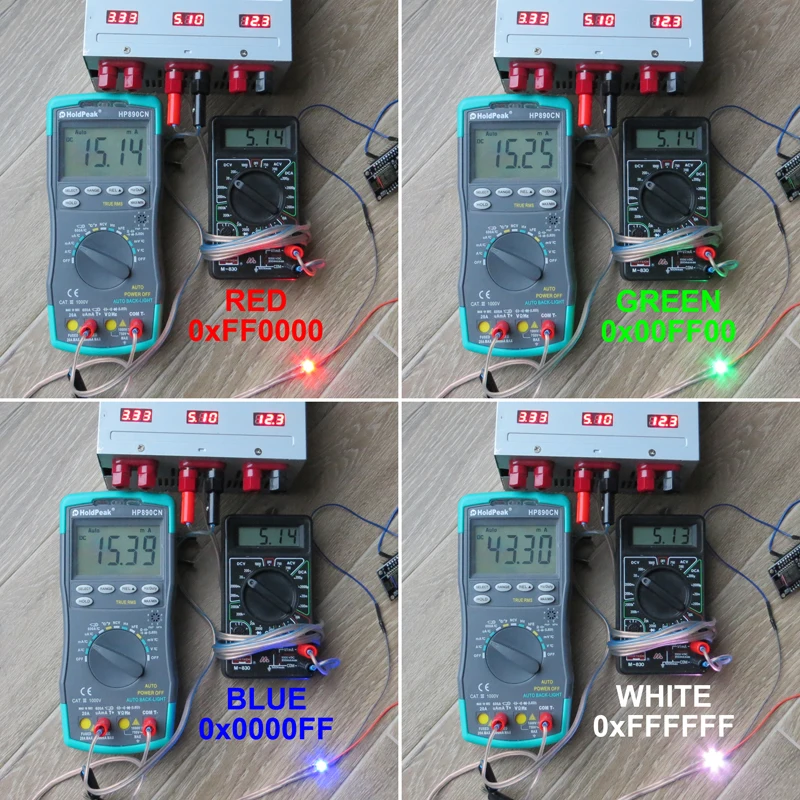 До МСК заказ дошел за 15 дней с полным отслеживанием. Паял себе гирлянду на 500 пикселей. Потребление заниженное, наверно не очень качественные светодиоды. Потребление: чёрный 0.72mA, на красном/зелёном/синем примерно по 15.5mA, белый 43.5mA. Белый немного уходит в красный. Снизил одну звезду за непонятки с потреблением и белым. Как я делал гирлянду можно глянуть по ссылке yadi. sk/d/fIo2UEuKpR54hg?w=1 (после точки убрать пробел).