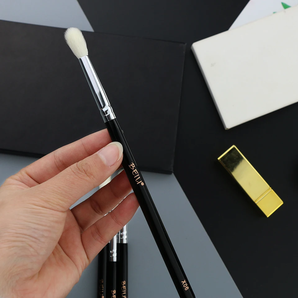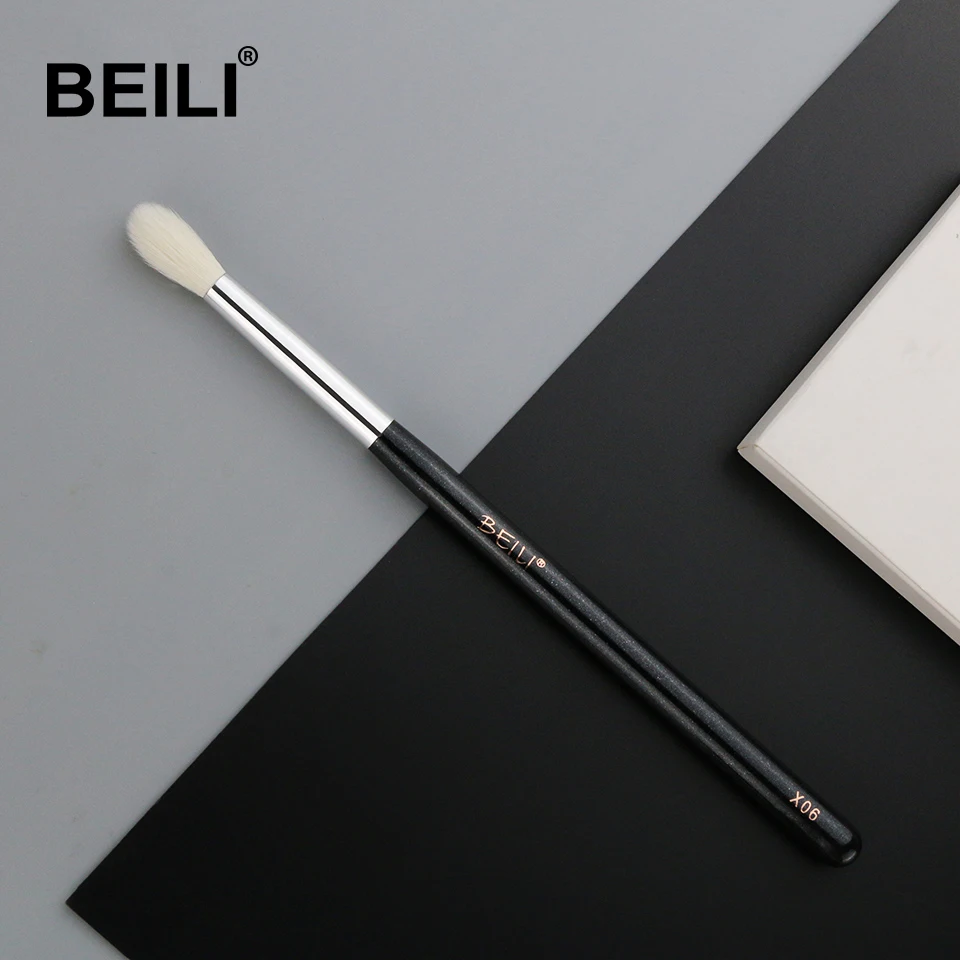 Кисти для макияжа BEILI X06X04X08, черные, для теней, коническая, смешивающая, осветляющая, натуральная козья шерсть, 1 шт.