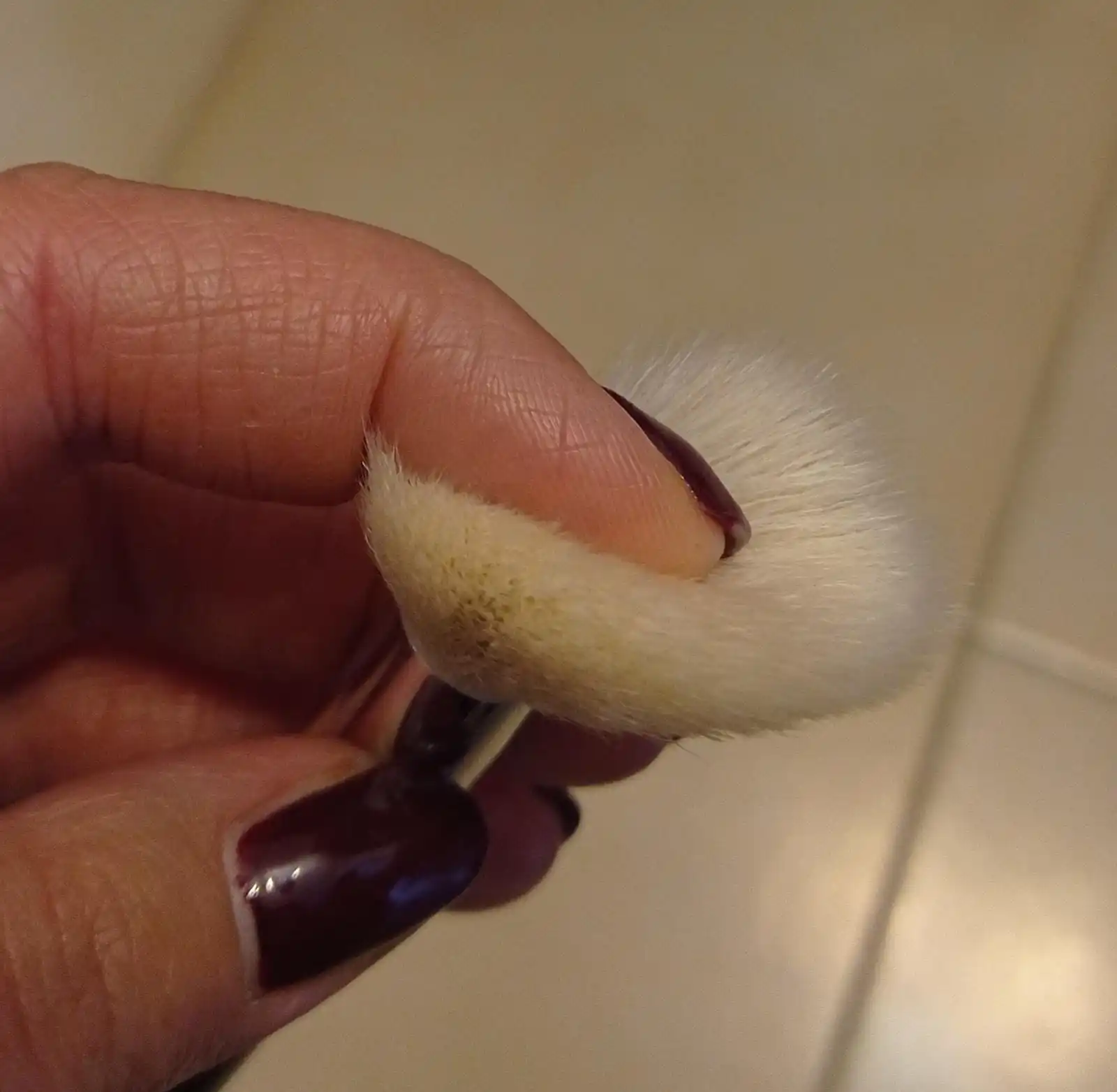 Кисть классная, с кремовыми текстурами работает отлично. Ворс мягкий, похож на натуральную козу. Немного распушилась после первой помывки. Ворсинки выпадают умеренно