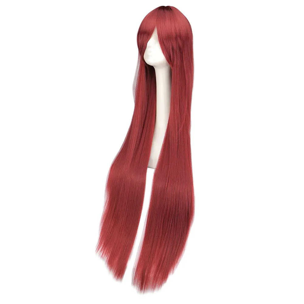 Длинные прямые парики QQXCAIW для косплея для вечеринок, черные, 40 дюймов, 100 см, из синтетических волос
