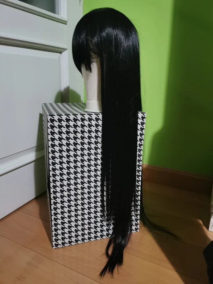 Okay, so how wig is looking: its really shiny, soft, long, layerd and it have fake skin on the top Its tangling as hell and for me this is the biggest problem with it. Detangling is hard too. Wig cap is the same as in partybox wigs, other than that its small and sewed really badly- cap misfits head in few places, but its not that visible when you have it on. The amount of hair is perfect if you want to wear it down... but oh boy. I tried to make a high ponytail on it and it was terrible- it tangled everywhere and had bald spots, so its not wig for that. Oh and hair loss- its really big, i had opportunity to brush it a few times now and its still losing hair. But lets be honest- for this price its a good deal if u need long, straight wig for photoshoots. On YT you can find tutorials on how to do a high ponytail on cheap wigs like this, but its gonna be permament. If you are looking for universal wig its not gonna happend here, but if u need a black wig on a budget- its just for you.