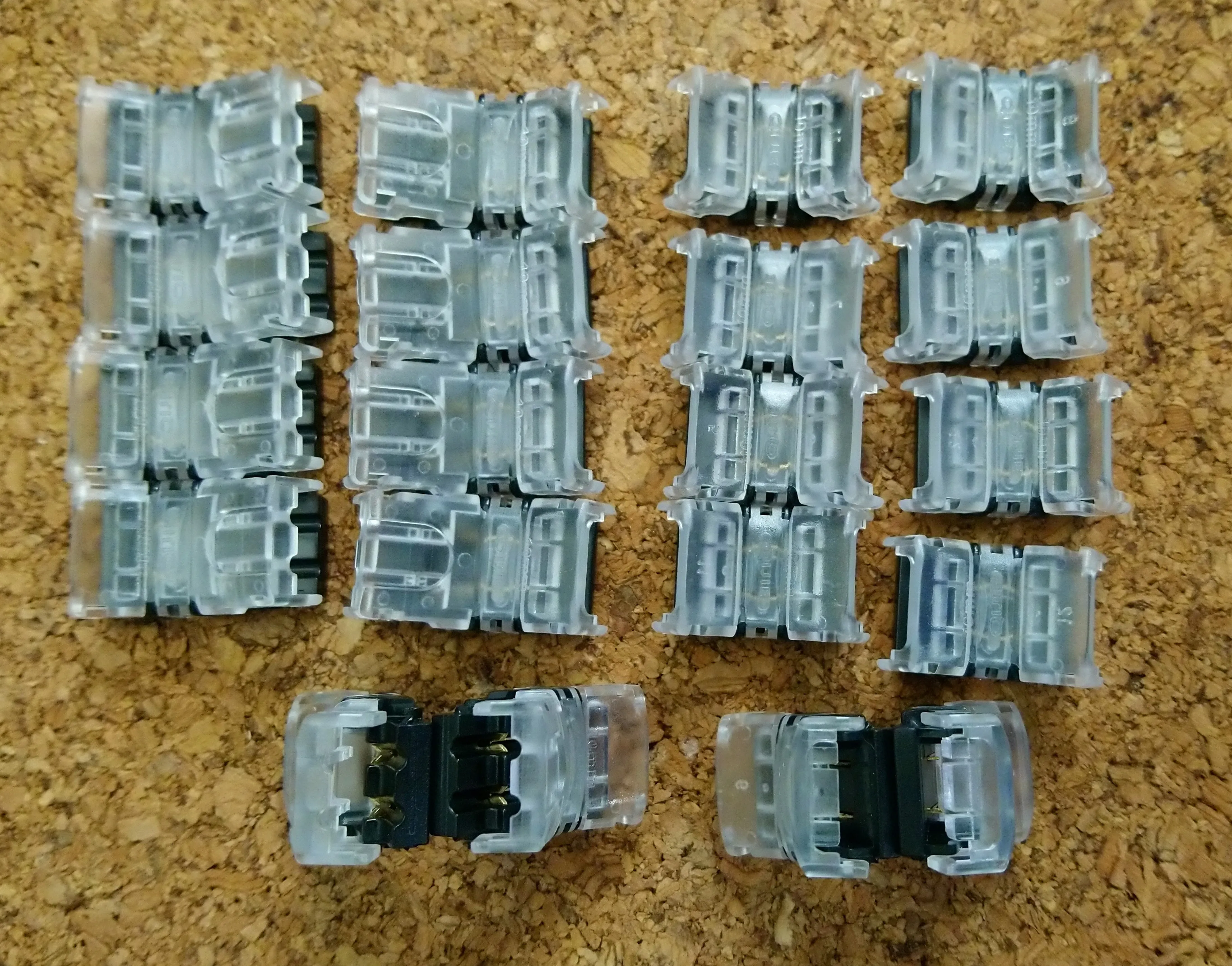 Они не соответствуют своей цели. Они не прилипают к светодиодной ленте и соединение не происходит, они также не делают достаточно вырезанными на изоляторе кабеля, и нет подключения. В конце я должен был приварить кабели к светодиодным полоскам