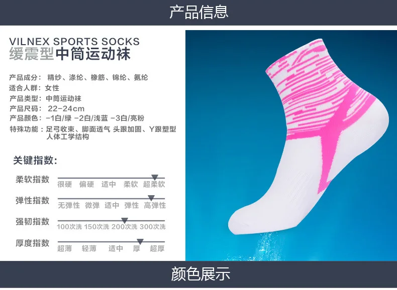 Мягкие женские носки для бадминтона с подкладкой; дышащие плотные спортивные носки для тенниса и пеших прогулок; Антибактериальная ткань; нескользящая подошва; L629OLC