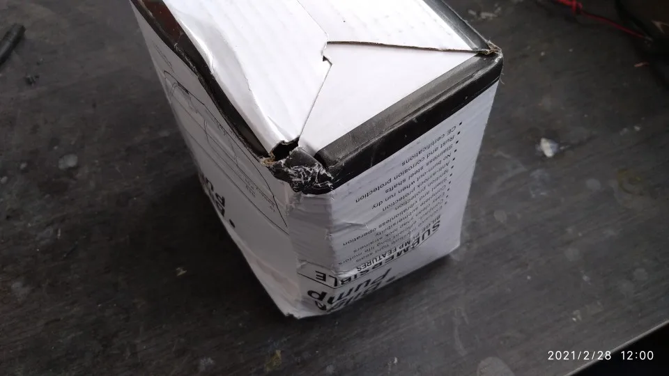Товар дошел целым, упакован нормально (мягкая упаковка, картон.коробка). В работе не проверял. Неточно указан ток потребления в описании товара. На шильдике самого насоса стоят цифры: "12 вольт, 3 ампера, предохранитель - 5 ампер).