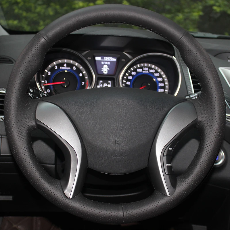 Кожаные сшитые вручную аксессуары AOSRRUN Чехлы рулевого колеса автомобиля для Hyundai Elantra 2011-2016, Avante i30 2012-2016