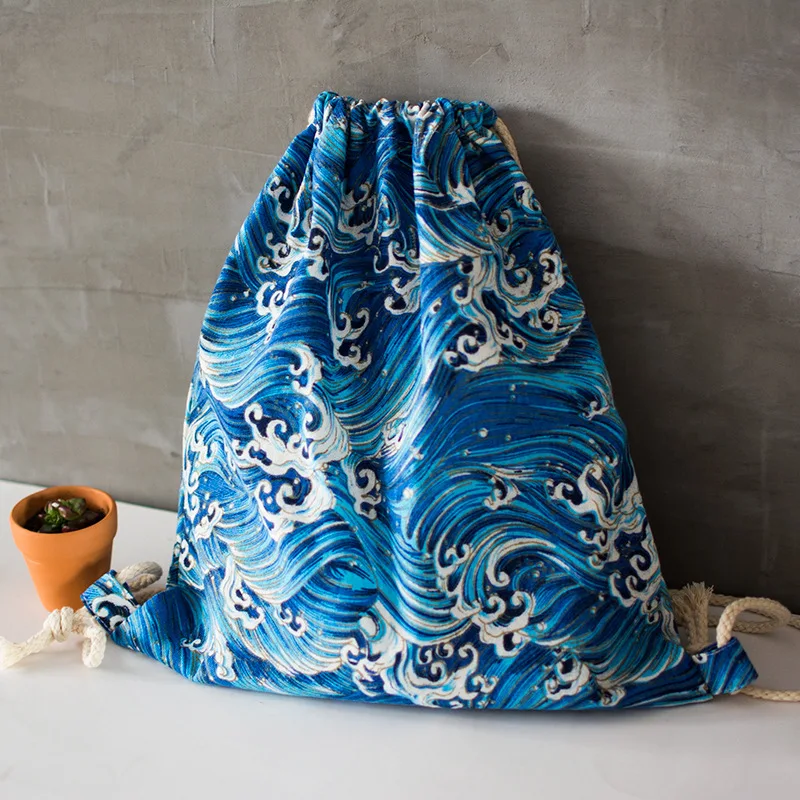 Дорожный рюкзак YILE из хлопка и льна на шнурке, сумка для обуви с сортировкой, Студенческая сумка для книг, Синий Морской волнистый спрей, 17414-2