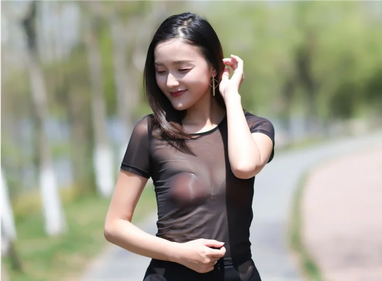 Сексуальная Женская Сетчатая футболка, ледяной шелк, Прозрачная Футболка, нижняя одежда, белая одежда для клубных танцев, боди, эротическое белье, X20
