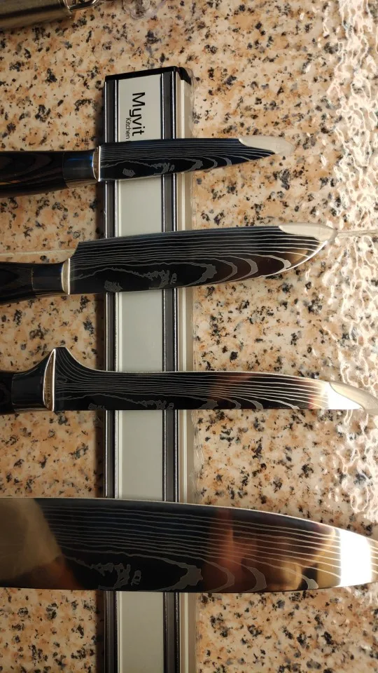 Хорошие ножи. Острые. Пришли в Москву за месяц, хотя по прогнозу было 2 месяца. В руке держать удобно. Позже отпишусь как быстро тупятся и хорошо ли точатся. Упаковка посылке очень продумана и на высоте.