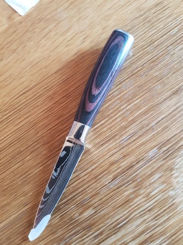 Нож красивый и умный. Ручка эргономичная и удобно сиди в руке. На удивление острый. Пришел в приемлемые сроки. Упаковке очень хорошо (см. фото). Пока впечатления исключительно положительные. Спасибо продавцу. Рекомендую как продавца так и товар.