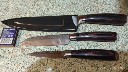 Лучшие ножи когда-либо видели, это потрясающее качество. Очень острые, действительно построены с отличной отделкой. Очень рекомендую. Прибыл в течение 25 дней, не оплачивается.