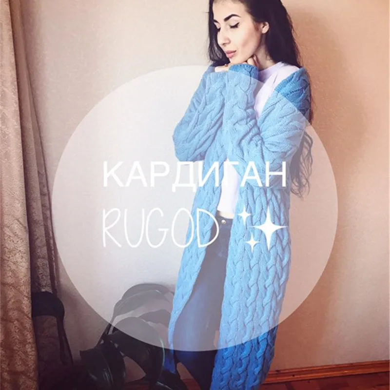 Rugod 2018 Новинка весны и зимs вязаный свитер Для женщин длинный витой кардиган платье открытые женские свитера Кардиган Для женщин