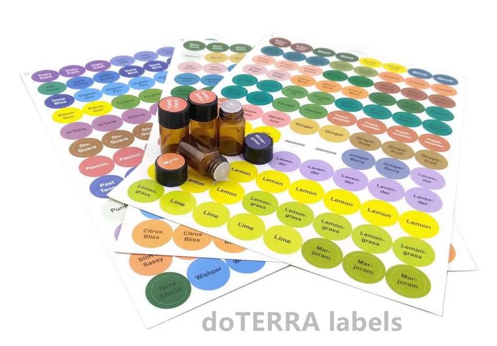 Этикетки для крышки бутылки, с вариантами этикеток doTERRA (3 листа 288 наклеек), этикеток Yound Live (6 листов 576 наклеек), пустых этикеток (2 листа 192 наклеек).