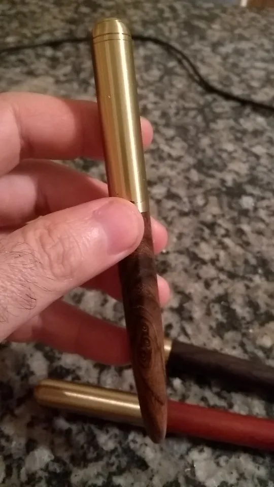 Красиво. Верх из тяжелой латуни. Удобно держать. Имеет винт сверху.