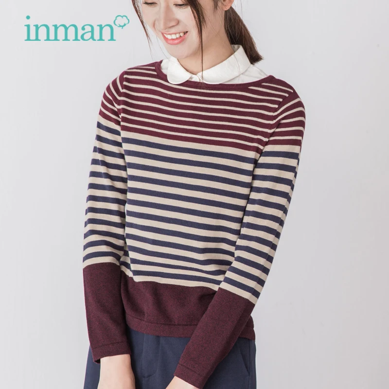 Женский трикотажный свитер INMAN, универсальный Повседневный свитер в полоску с длинным рукавом и круглым вырезом на весну и осень